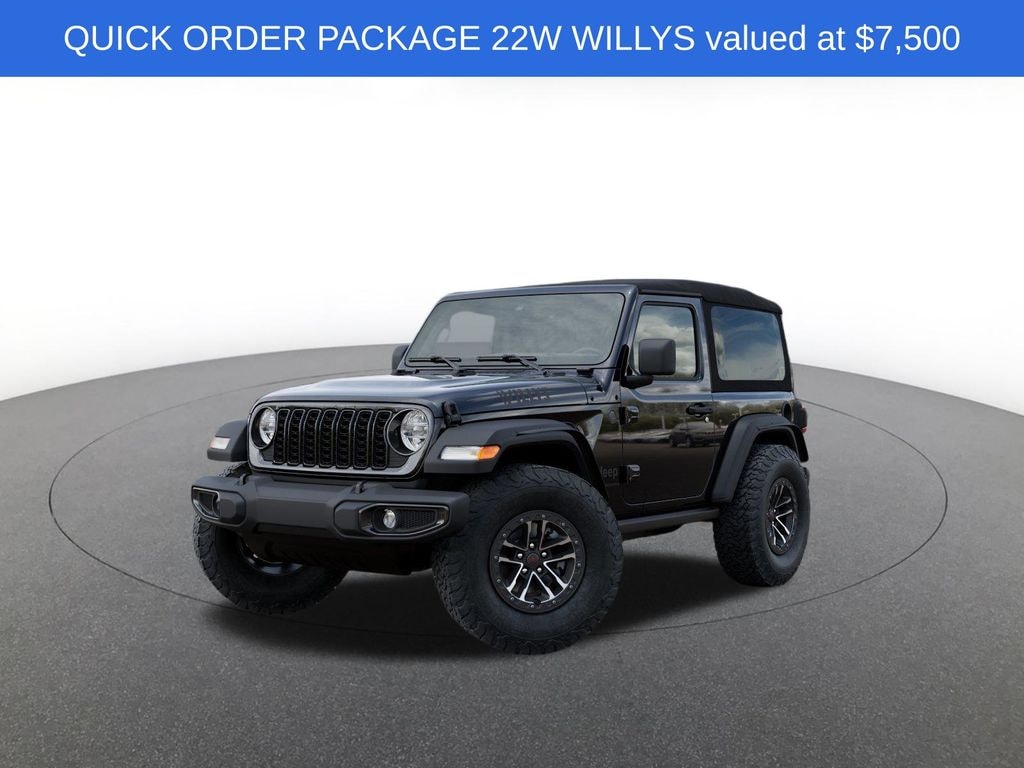 Convenience Group (2-Door Passive Entry, Front Door Locks, Air Conditioning w/Auto Temperature Control, Air Filtering, Cluster 7.0" TFT Color Display, Emergency/Assistance Call, Heated Front Seats, Heated Steering Wheel, Remote Start System, and Universal Garage Door Opener), Quick Order Package 22W Willys (4-Wheel Drive Swing Gate Decal, 7 & 4 Pin Wiring Harness, 97 MPH Vehicle Max Speed Calibration, Advanced Brake Assist, Automatic Headlamps, Auxiliary Switches, Black Grille, Class II Receiver Hitch, Conventional Differential Front Axle, Corning Gorilla Glass, Dana M210 Wide HD Tube Front Axle, Dana M220 Wide Rear Axle, Daytime Running Lamps LED Accents, Deep Tint Sunscreen Windows, E-Locker Rear Axle, Enhanced Adaptive Cruise Control, Front LED Fog Lamps, Full Speed Forward Collision Warning Plus, Injection Molded Black Rear Bumper, LED Premium Reflector Headlamps, Mold In Color Bumper w/Gloss Black, Molded in Color Rubicon Highline Flare, MOPAR All-Weather Floor Mats, Off-Road Plus Mode, Power Heated Mirrors, Premium Wrapped Steering Wheel, Security Alarm, Sun Visors w/Illuminated Vanity Mirrors, Wheels: 17" x 7.5" Painted Black, Willy's Suspension, and Willys Hood Decal), Safety Group (Auto High Beam Headlamp Control, Blind Spot & Cross Path Detection, LED Taillamps, and ParkSense Rear Park Assist System), Xtreme 35 Tire Package (35" Tire Suspension, Dana M220 Wide Full Floating Rear Axle, MOPAR Hinge-Gate Reinforcement, MOPAR Jack Spacer, MOPAR Tire Relocation Kit, Wheel Flare Extensions, and Wheels: 17" x 8" Machined w/Black Pockets), 110 MPH Vehicle Max Speed Calibration, 4-Wheel Disc Brakes, 8 Speakers, ABS brakes, Air Conditioning, AM/FM radio: SiriusXM, Apple CarPlay/Android Auto, Aux Battery, Brake assist, Cloth Low-Back Bucket Seats, Compass, Delay-off headlights, Driver door bin, Driver vanity mirror, Dual front impact airbags, Dual front side impact airbags, Electronic Stability Control, Front anti-roll bar, Front Bucket Seats, Front Center Armrest w/Storage, Front fog lights, Front reading lights, Illuminated entry, Integrated roll-over protection, Low tire pressure warning, Non-Lock Fuel Cap w/o Discriminator, Normal Duty Suspension, Occupant sensing airbag, Outside temperature display, Overhead airbag, Panic alarm, ParkView Rear Back-Up Camera, Passenger door bin, Passenger vanity mirror, Power steering, Power windows, Radio data system, Radio: Uconnect 5 w/12.3" Display, Rear anti-roll bar, Rear reading lights, Remote keyless entry, Speed control, Steering wheel mounted audio controls, Stop-Start Dual Battery System, Tachometer, Telescoping steering wheel, Tilt steering wheel, Traction control, Trip computer, Variably intermittent wipers, and Wheels: 17" x 7.5" Black Steel S
