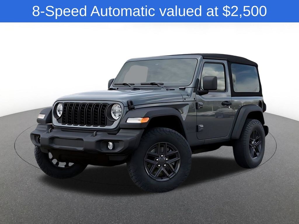 Convenience Group (2-Door Passive Entry, Front Door Locks, Air Conditioning with Auto Temp Control, Air Filtering, Cluster 7.0" TFT Color Display, Emergency/Assistance Call, Heated Front Seats, Heated Steering Wheel, and Universal Garage Door Opener), LED Headlamp and Fog Lamp Group (Front LED Fog Lamps and LED Premium Reflector Headlamps), Quick Order Package 22S Sport S (Advanced Brake Assist, Automatic Headlamps, Corning Gorilla Glass, Deep Tint Sunscreen Windows, Enhanced Adaptive Cruise Control, Full Speed Forward Collision Warning Plus, Power Heated Mirrors, Premium Wrapped Steering Wheel, Security Alarm, Sun Visors with Illuminated Vanity Mirrors, and Wheels: 17" x 7.5" Gray), Safety Group (Auto High Beam Headlamp Control, Blind Spot and Cross Path Detection, Injection Molded Black Rear Bumper, LED Taillamps, and ParkSense Rear Park Assist System), Trailer Tow and Auxiliary Switch Group (7 and 4 Pin Wiring Harness, Auxiliary Switches, and Class II Receiver Hitch), 12.3" Touchscreen Display, 3.45 Overall Top Gear Ratio, 4-Wheel Disc Brakes, 4G LTE Wi-Fi Hot Spot, 8 Speakers, ABS brakes, Air Conditioning, AM/FM radio: SiriusXM with 360L, Apple CarPlay, Apple CarPlay/Android Auto, Aux Battery, Brake assist, Cloth Low-Back Bucket Seats, Compass, Connectivity - US/Canada, Delay-off headlights, Driver door bin, Driver vanity mirror, Dual front impact airbags, Dual front side impact airbags, Electronic Stability Control, For More Info, Call 800-643-2112, Front anti-roll bar, Front Bucket Seats, Front Center Armrest w/Storage, Front fog lights, Front reading lights, Google Android Auto, Illuminated entry, Integrated Center Stack Radio, Integrated roll-over protection, Jeep Trail Rated Kit, Low tire pressure warning, MOPAR All-Weather Floor Mats, MOPAR Doors Off Mirror Kit, Non-Lock Fuel Cap Without Discriminator, Normal Duty Suspension, Occupant sensing airbag, Outside temperature display, Overhead airbag, Panic alarm, ParkView Rear Back-Up Camera, Passenger door bin, Passenger vanity mirror, Power steering, Power windows, Radio data system, Radio: Uconnect 5 with 12.3" Display, Rear anti-roll bar, Rear reading lights, Remote keyless entry, SiriusXM Radio Service, SiriusXM with 360L, Speed control, Steering wheel mounted audio controls, Stop-Start Dual Battery System, Tachometer, Telescoping steering wheel, Tilt steering wheel, Traction control, Trip computer, Variably intermittent wipers, and Wheels: 17" x 7.5" Black Steel Styled.