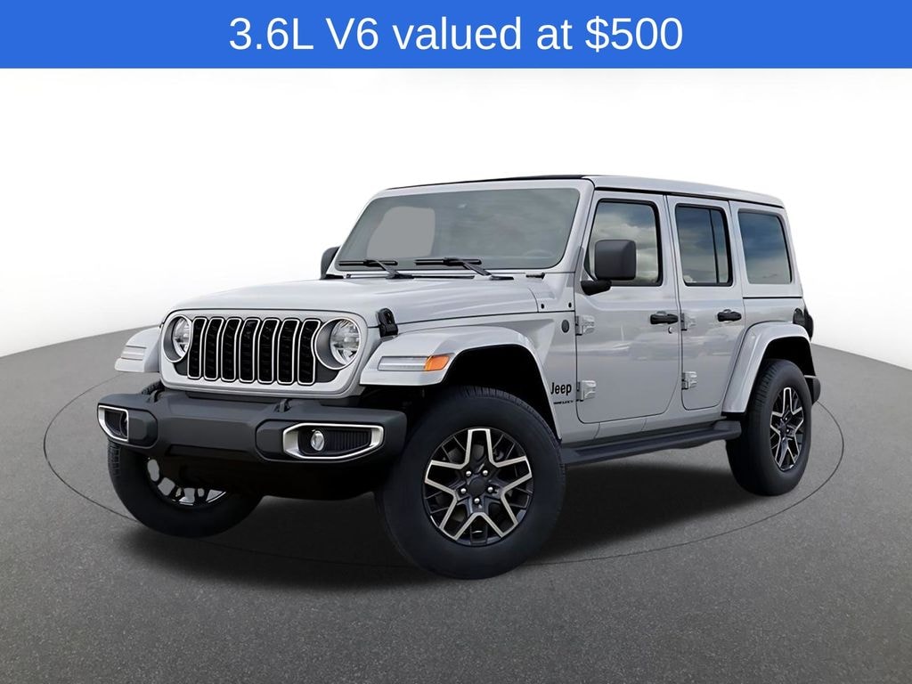 Quick Order Package 24G, Sahara Popular Equipment Group (12.3" Touchscreen Display, 4G LTE Wi-Fi Hot Spot, Alpine Premium Audio System, Apple CarPlay, Auto High Beam Headlamp Control, Auto-Dimming Rear-View Mirror, Blind Spot and Cross Path Detection, Connected Travel and Traffic Services, Connectivity - US/Canada, For More Info, Call 800-643-2112, Google Android Auto, GPS Navigation, Hard Seat Back, HD Radio, Integrated Center Stack Radio, Integrated Off-Road Camera, Integrated Voice Command with Bluetooth, Leather Wrapped Park Brake Handle, Leather Wrapped Shift Knob, McKinley Trimmed Seats, ParkSense Rear Park Assist System, Power 4-Way Driver Lumbar Adjust, Power 4-Way Passenger Lumbar Adjust, Power Adjust 8-Way Driver Seat, Power Adjust 8-Way Front Passenger Seat, Radio: Uconnect 5 Navigation with 12.3" Display, Side Steps, SiriusXM Radio Service, SiriusXM with 360L, and Universal Garage Door Opener), 3.45 Overall Top Gear Ratio, 4-Wheel Disc Brakes, 8 Speakers, ABS brakes, Air Conditioning, Alloy wheels, AM/FM radio: SiriusXM with 360L, Apple CarPlay/Android Auto, Automatic temperature control, Aux Battery, Brake assist, Cloth Low-Back Bucket Seats, Compass, Delay-off headlights, Driver door bin, Driver vanity mirror, Dual front impact airbags, Dual front side impact airbags, Electronic Stability Control, Emergency communication system: Jeep Connect, Front anti-roll bar, Front Bucket Seats, Front Center Armrest w/Storage, Front dual zone A/C, Front fog lights, Front reading lights, Fully automatic headlights, Heated door mirrors, Heated front seats, Heated steering wheel, Heavy Duty Suspension with Gas Shocks, Illuminated entry, Integrated roll-over protection, Low tire pressure warning, MOPAR All-Weather Floor Mats, Non-Lock Fuel Cap Without Discriminator, Occupant sensing airbag, Outside temperature display, Overhead airbag, Panic alarm, ParkView Rear Back-Up Camera, Passenger door bin, Passenger vanity mirror, Power door mirrors, Power steering, Power Top Quarter Window Storage Bag, Power windows, Radio data system, Radio: Uconnect 5 with 12.3" Display, Rear anti-roll bar, Rear reading lights, Rear Window Defroster, Rear Window Wiper/Washer, Remote keyless entry, Removable Rear Quarter Windows, Security system, Sky One-Touch Power Top, Speed control, Split folding rear seat, Steering wheel mounted audio controls, Stop-Start Dual Battery System, Tachometer, Telescoping steering wheel, Tilt steering wheel, Traction control, Trip computer, Variably intermittent wipers, Voltmeter, and Wheels: 18" x 7.5" Machine/Painted Gray.