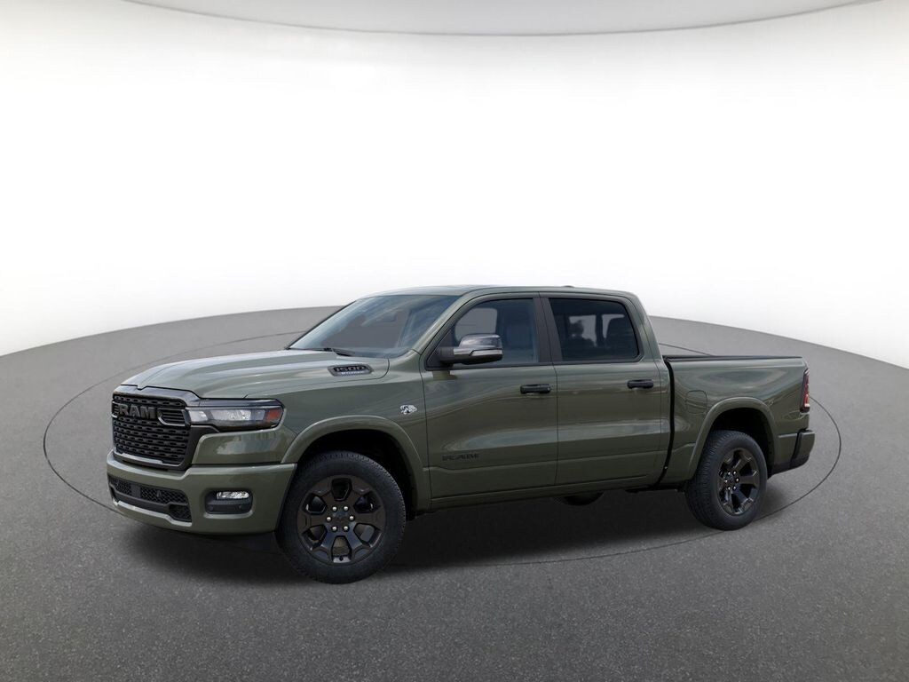 Big Horn Level 2 Equipment Group (115V Auxiliary Power Outlet, 115V Auxiliary Rear Power Outlet, 12" Touchscreen Display, 2nd Row in Floor Storage Bins, 3 Rear Seat Head Restraints, 4 Way Front Headrests, 400W Inverter, 4G LTE Wi-Fi Hot Spot, 9 Amplified Speakers with Subwoofer, Air Conditioning ATC with Dual Zone Control, Apple CarPlay, Auto Power-Folding Mirrors, Auto-Dimming Exterior Driver Mirror, Auto-Dimming Rear-View Mirror, Black Exterior Mirrors, Black Premium Power Mirrors, Body Color Fender Flares, Bucket Seats, Center Console Parts Module, Cluster 7.0" TFT Color Display, Configurable Drive Mode, Connected Travel and Traffic Services, Connectivity - US/Canada, Convex Wide-Angle Exterior Mirror Insert, Deluxe Cloth Bucket Seats, Disassociated Touchscreen Display, Exterior Mirrors Courtesy Lamps, Exterior Mirrors with Heating Element, Exterior Mirrors with Supplemental Signals, Front Seat Back Map Pockets, Full Length Floor Console, Global Telematics Box Module, Glove Box Lamp, Google Android Auto, GPS Antenna Input, GPS Navigation, HD Radio, Heated Front Seats, Heated Steering Wheel, Integrated Center Stack Radio, Integrated Voice Command with Bluetooth, Leather Wrapped Steering Wheel, LED Dome Lamp with on/Off Switch, LED Footwell Lighting, Manual Adjust 4-Way Front Passenger Seat, Media Hub with 2 Charge Only USBs, Overhead LED Lamps, Power 2-Way Driver Lumbar Adjust, Power Adjust 8-Way Driver Seat, Power Adjustable Pedals, Premium Overhead Console, Radio: Uconnect 5 Navigation with 12.0" Display, Rear 60/40 Folding Seat, Rear Center Armrest, Rear Power Sliding Window, Rear Window Defroster, Remote Tailgate Release, Security Alarm, SiriusXM Radio Service, SiriusXM with 360L, Steering Wheel Mounted Audio Controls, Sun Visors with Illuminated Vanity Mirrors, Universal Garage Door Opener, and USB Host Flip), Night Edition (Accent Color Door Handles, Accent Color Premium Power Mirrors, Accent Color Tailgate Handle, Anti-Spin Differential Rear Axle, Black Exterior Truck Badging, Black Headlamp Bezels, Black Interior Accents, Black Painted Exterior Mirrors Caps, Black Tail Lamp Bezels, Body Color Front Bumper, Body Color Rear Bumper with Step Pads, Dual Exhaust with Black Tips, Grille Black Surround Black Mesh, RAM Grille Badge - Black, and Wheels: 20" x 9.0" Aluminum Painted Clad), Quick Order Package 27Z Big Horn, 4-Wheel Disc Brakes, 48V Belt Starter Generator, 6 Speakers, ABS brakes, Air Conditioning, Alloy wheels, AM/FM radio, Apple CarPlay/Android Auto, Auto High-beam Headlights, Brake assist, Bumpers: chrome, Cloth Bucket Seats, Compass, Delay-off headlights, Dome Dual LED Reading Lamp, Driver door bin, Dual front impact airbags, Dual front side impact airbags, Dual-Pane Panoramic Sunroof, Electronic Stability Control, Front ant