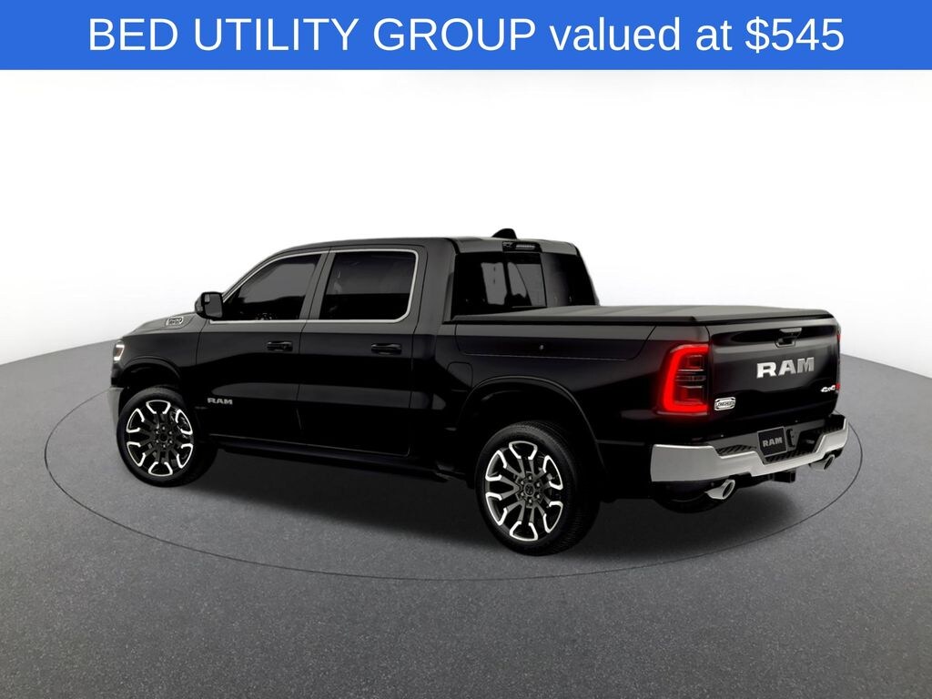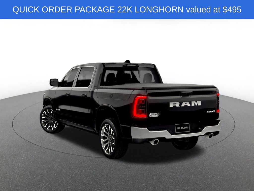 Bed Utility Group (Exterior 115V AC Outlet and MOPAR 4 Adjustable Cargo Tie-Down Hooks), Limited Level An Equipment Group (12-Way/1-Way Trailer Connector, 14.4" Touchscreen Display, 240 Amp Alternator, 4G LTE Wi-Fi Hot Spot, Apple CarPlay, Connected Travel & Traffic Services, Connectivity - US/Canada, Disassociated Touchscreen Display, Drowsy Driver Detection, Evasive Steer Assist, Global Telematics Box Module (TBM), Google Android Auto, GPS Antenna Input, GPS Navigation, Hands-Free Active Driving Assist System, HD Radio, Heads-Up Display, Integrated Center Stack Radio, Integrated Voice Command w/Bluetooth, Intersection Collision Assist System, LED CHMSL Lamp, Radio: Uconnect 5 Nav w/14.4" Display, RamBox Cargo Management System, SiriusXM Radio Service, SiriusXM w/360L, Smartphone As A Key Capable, Surround View Camera System, Traffic Sign Recognition, Tri-Fold Tonneau Cover, and USB Host Flip), Quick Order Package 22K Longhorn (Grille Surround 4 Chrome Texture 5 Chrome, Longhorn Badge, Longhorn Instrument Cluster Theme 3, Premium Door Trim Panel, Premium Filigree Leather Seats, and Warm Chrome Key Fob), 19 Speakers, 3.92 Rear Axle Ratio, 4-Wheel Disc Brakes, ABS brakes, Active Noise Control System, Adjustable pedals, Air Conditioning, Alloy wheels, AM/FM radio, Apple CarPlay/Android Auto, Audio memory, Auto High-beam Headlights, Auto Power-Folding Mirrors, Auto-dimming door mirrors, Auto-Dimming Exterior Driver Mirror, Auto-dimming Rear-View mirror, Auto-leveling suspension, Automatic temperature control, Bodyside moldings, Brake assist, Bumpers: chrome, Chrome Exterior Mirrors, Compass, Convex Wide-Angle Exterior Mirror Insert, Delay-off headlights, Driver door bin, Driver vanity mirror, Dual front impact airbags, Dual front side impact airbags, Electronic Stability Control, Exterior Mirrors Courtesy Lamps, Exterior Mirrors w/Heating Element, Exterior Mirrors w/Memory, Exterior Mirrors w/Supplemental Signals, Exterior Parking Camera Rear, Front anti-roll bar, Front Bucket Seats, Front Center Armrest w/Storage, Front dual zone A/C, Front fog lights, Front License Plate Bracket, Front reading lights, Front wheel independent suspension, Fully automatic headlights, Garage door transmitter, Genuine wood console insert, Genuine wood dashboard insert, Genuine wood door panel insert, Heated door mirrors, Heated front seats, Heated rear seats, Heated steering wheel, Illuminated entry, Leather steering wheel, Low tire pressure warning, Manufacturer's Statement of Origin, Memory seat, Navigation System, Occupant sensing airbag, Outside temperature display, Overhead airbag, Overhead console, Panic alarm, Passenger door bin, Passenger vanity mirror, Pedal memory, Pirelli Brand Tires, Power door mirrors, Power driver seat, Power passenger seat, Power steering, Power