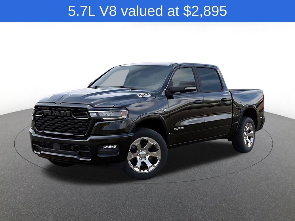 Big Horn Level 2 Equipment Group (115V Auxiliary Power Outlet, 115V Auxiliary Rear Power Outlet, 12" Touchscreen Display, 2nd Row in Floor Storage Bins, 3 Rear Seat Head Restraints, 4 Way Front Headrests, 400W Inverter, 4G LTE Wi-Fi Hot Spot, 9 Amplified Speakers with Subwoofer, Air Conditioning ATC with Dual Zone Control, Apple CarPlay, Auto Power-Folding Mirrors, Auto-Dimming Exterior Driver Mirror, Auto-Dimming Rear-View Mirror, Black Exterior Mirrors, Black Premium Power Mirrors, Body Color Fender Flares, Bucket Seats, Center Console Parts Module, Cluster 7.0" TFT Color Display, Configurable Drive Mode, Connected Travel and Traffic Services, Connectivity - US/Canada, Convex Wide-Angle Exterior Mirror Insert, Deluxe Cloth Bucket Seats, Disassociated Touchscreen Display, Exterior Mirrors Courtesy Lamps, Exterior Mirrors with Heating Element, Exterior Mirrors with Supplemental Signals, Front Seat Back Map Pockets, Full Length Floor Console, Global Telematics Box Module, Glove Box Lamp, Google Android Auto, GPS Antenna Input, GPS Navigation, HD Radio, Heated Front Seats, Heated Steering Wheel, Integrated Center Stack Radio, Integrated Voice Command with Bluetooth, Leather Wrapped Steering Wheel, LED Dome Lamp with on/Off Switch, LED Footwell Lighting, Manual Adjust 4-Way Front Passenger Seat, Media Hub with 2 Charge Only USBs, Overhead LED Lamps, Power 2-Way Driver Lumbar Adjust, Power Adjust 8-Way Driver Seat, Power Adjustable Pedals, Premium Overhead Console, Radio: Uconnect 5 Navigation with 12.0" Display, Rear 60/40 Folding Seat, Rear Center Armrest, Rear Power Sliding Window, Rear Window Defroster, Remote Tailgate Release, Security Alarm, SiriusXM Radio Service, SiriusXM with 360L, Steering Wheel Mounted Audio Controls, Sun Visors with Illuminated Vanity Mirrors, Universal Garage Door Opener, and USB Host Flip), Quick Order Package 27Z Big Horn, Sport Appearance Package (Black Interior Accents, Body Color Door Handles, Body Color Front Bumper, Body Color Rear Bumper with Step Pads, Body Color Tailgate Handle, Grille Surround 1 Body Color Texture 1 Black, and RAM Grille Badge - Chrome), Trailer Tow Group II (Accent Color Tailgate Handle, Trailer Brake Control, Trailer Reverse Steering Control, and Trailer Tire Pressure Monitoring System), 4-Wheel Disc Brakes, 48V Belt Starter Generator, 6 Speakers, ABS brakes, Air Conditioning, Alloy wheels, AM/FM radio, Apple CarPlay/Android Auto, Auto High-beam Headlights, Brake assist, Bumpers: chrome, Cloth Bucket Seats, Compass, Delay-off headlights, Driver door bin, Dual front impact airbags, Dual front side impact airbags, Electronic Stability Control, Front anti-roll bar, Front Bucket Seats, Front Center Armrest w/Storage, Front fog lights, Front License Plate Bracket, Front reading lights, Front wheel independent suspension, Fully automatic headlights, Heate