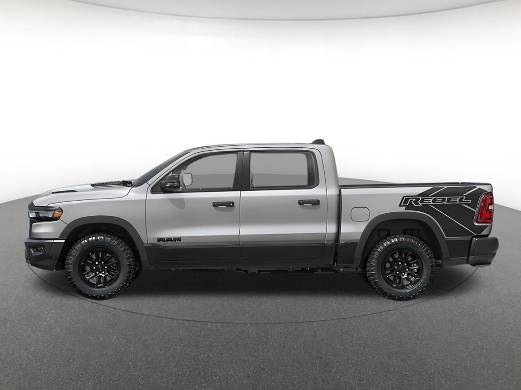 Bed Utility Group (Exterior 115V AC Outlet, MOPAR 4 Adjustable Cargo Tie-Down Hooks, and MOPAR Spray in Bedliner), Quick Order Package 21W Rebel, Rebel Level 1 Equipment Group (Auto Power-Folding Mirrors, Auto-Dimming Exterior Driver Mirror, Black Exterior Mirrors, Black Premium Power Mirrors, Convex Wide-Angle Exterior Mirror Insert, Exterior Mirrors Courtesy Lamps, Exterior Mirrors with Heating Element, Exterior Mirrors with Supplemental Signals, Power Adjustable Pedals, Rear Window Defroster, Remote Tailgate Release, and Wireless Charging Pad), Trailer Tow Group (Accent Color Tailgate Handle, Trailer Brake Control, Trailer Light Check, Trailer Reverse Steering Control, and Trailer Tire Pressure Monitoring System), 10 Speakers, 3.92 Rear Axle Ratio, 4 Way Front Headrests, 4-Corner Air Suspension, 4-Wheel Disc Brakes, 4G LTE Wi-Fi Hot Spot, ABS brakes, Active Noise Control System, Air Conditioning, Alloy wheels, AM/FM radio: SiriusXM with 360L, Apple CarPlay, Apple CarPlay/Android Auto, Auto High-beam Headlights, Auto-dimming Rear-View mirror, Automatic temperature control, Black Trailer Tow Power Mirrors, Brake assist, Bucket Seats, Cloth/Vinyl Bucket Seats, Compass, Connected Travel and Traffic Services, Connectivity - US/Canada, Delay-off headlights, Disassociated Touchscreen Display, Driver door bin, Driver vanity mirror, Dual front impact airbags, Dual front side impact airbags, Electronic Stability Control, Front anti-roll bar, Front Bucket Seats, Front Center Armrest w/Storage, Front dual zone A/C, Front fog lights, Front License Plate Bracket, Front reading lights, Front Seat Back Map Pockets, Front wheel independent suspension, Full Length Upgraded Floor Console, Fully automatic headlights, Garage door transmitter, Global Telematics Box Module, Google Android Auto, GPS Antenna Input, GPS Navigation, HD Radio, Heated door mirrors, Heated Front Seats, Heated front seats, Heated Steering Wheel, Heated steering wheel, Illuminated entry, Integrated Center Stack Radio, Integrated Voice Command with Bluetooth, Leather steering wheel, Low tire pressure warning, Manual Folding Exterior Mirrors, Manual Telescoping Mirrors, Mirror Clearance/Running Lights, Mopar Black Tubular Side Steps, Navigation System, Occupant sensing airbag, Off-Road Information Pages, Outside temperature display, Overhead airbag, Overhead console, Panic alarm, ParkView Rear Back-Up Camera, Passenger door bin, Passenger vanity mirror, Power 2-Way Driver Lumbar Adjust, Power Adjust 8-Way Driver Seat, Power door mirrors, Power driver seat, Power steering, Power windows, Power-Adjustable Convex Aux Mirrors, Radio data system, Radio: Uconnect 5 Navigation with 12.0" Display, Rear 60/40 Folding Seat, Rear anti-roll bar, Rear seat center armrest, Rear step bumper, Remote keyless entry, SiriusXM Radio Service, SiriusXM with 360L, Speed control, Split folding rear seat, Steering wheel mounted audio controls, Tachometer, Telescoping steering wheel, Tilt steering wheel,