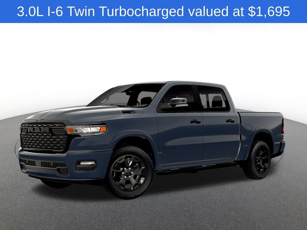Big Horn Level 2 Equipment Group (115V Auxiliary Power Outlet, 115V Auxiliary Rear Power Outlet, 12" Touchscreen Display, 2nd Row In Floor Storage Bins, 3 Rear Seat Head Restraints, 4 Way Front Headrests, 400W Inverter, 4G LTE Wi-Fi Hot Spot, 9 Amplified Speakers w/Subwoofer, Air Conditioning ATC w/Dual Zone Control, Apple CarPlay, Auto Power-Folding Mirrors, Auto-Dimming Exterior Driver Mirror, Auto-Dimming Rear-View Mirror, Black Exterior Mirrors, Black Premium Power Mirrors, Body Color Fender Flares, Bucket Seats, Center Console Parts Module, Cluster 7.0" TFT Color Display, Configurable Drive Mode, Connected Travel & Traffic Services, Connectivity - US/Canada, Convex Wide-Angle Exterior Mirror Insert, Deluxe Cloth Bucket Seats, Disassociated Touchscreen Display, Exterior Mirrors Courtesy Lamps, Exterior Mirrors w/Heating Element, Exterior Mirrors w/Supplemental Signals, Front Seat Back Map Pockets, Full Length Floor Console, Global Telematics Box Module (TBM), Glove Box Lamp, Google Android Auto, GPS Antenna Input, GPS Navigation, HD Radio, Heated Front Seats, Heated Steering Wheel, Integrated Center Stack Radio, Integrated Voice Command w/Bluetooth, Leather Wrapped Steering Wheel, LED Dome Lamp w/On/Off Switch, LED Footwell Lighting, Manual Adjust 4-Way Front Passenger Seat, Media Hub w/2 Charge Only USBs, Overhead LED Lamps, Power 2-Way Driver Lumbar Adjust, Power Adjust 8-Way Driver Seat, Power Adjustable Pedals, Premium Overhead Console, Radio: Uconnect 5 Nav w/12.0" Display, Rear 60/40 Folding Seat, Rear Center Armrest, Rear Power Sliding Window, Rear Window Defroster, Remote Tailgate Release, Secondary Active Grille Shutters, Security Alarm, SiriusXM Radio Service, SiriusXM w/360L, Steering Wheel Mounted Audio Controls, Sun Visors w/Illuminated Vanity Mirrors, Universal Garage Door Opener, USB Host Flip, Wheels: 20" x 9" Aluminum Chrome Clad (WRK), and Wireless Charging Pad), Night Edition (Accent Color Door Handles, Accent Color Premium Power Mirrors, Accent Color Tailgate Handle, Anti-Spin Differential Rear Axle, Black Exterior Truck Badging, Black Headlamp Bezels, Black Interior Accents, Black Painted Exterior Mirrors Caps, Black Tail Lamp Bezels, Body Color Front Bumper, Body Color Rear Bumper w/Step Pads, Dual Exhaust w/Black Tips, Grille Black Surround Black Mesh, RAM Grille Badge - Black, and Wheels: 20" x 9.0" Aluminum Painted Clad), Quick Order Package 21Z Big Horn, 4-Wheel Disc Brakes, 48V Belt Starter Generator, 6 Speakers, ABS brakes, Air Conditioning, Alloy wheels, AM/FM radio, Apple CarPlay/Android Auto, Auto High-beam Headlights, Brake assist, Bumpers: chrome, Cloth Bucket Seats, Compass, Delay-off headlights, Driver door bin, Dual front impact airbags, Dual front side impact airbags, Electronic Stability Control, Front anti-roll bar, Front Buc