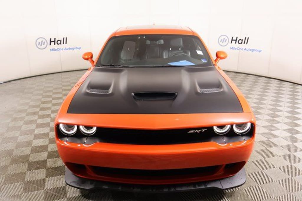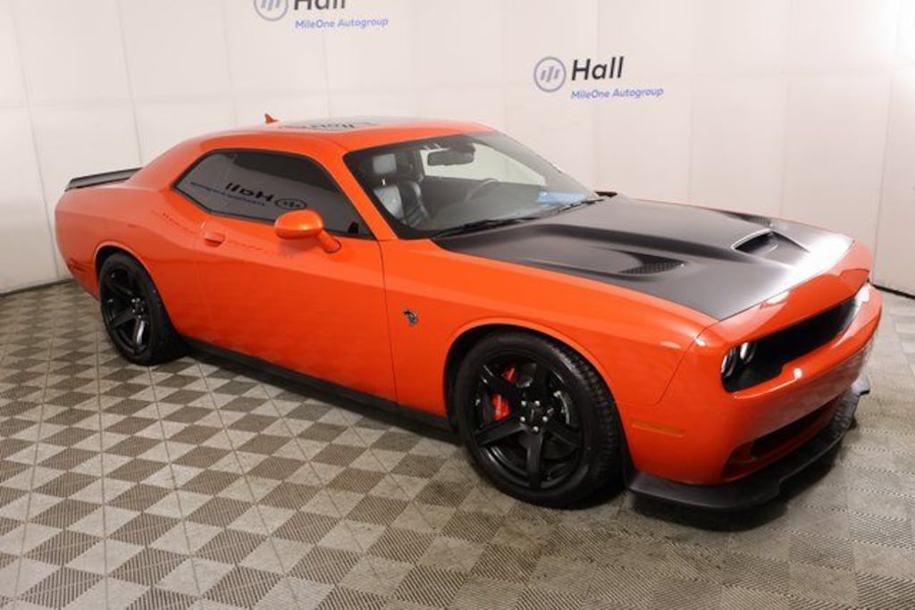 Go Mango 2017 Dodge Challenger SRT Hellcat RWD 8-Speed Automatic 6.2L V8 Supercharged Challenger SRT Hellcat, 2D Coupe, 6.2L V8 Supercharged, 8-Speed Automatic, RWD, Go Mango, Black Leather, We are currently offering Vehicle Purchase Home Delivery by appointment. Please contact for details., Navigation System, Quick Order Package 26R SRT Hellcat.