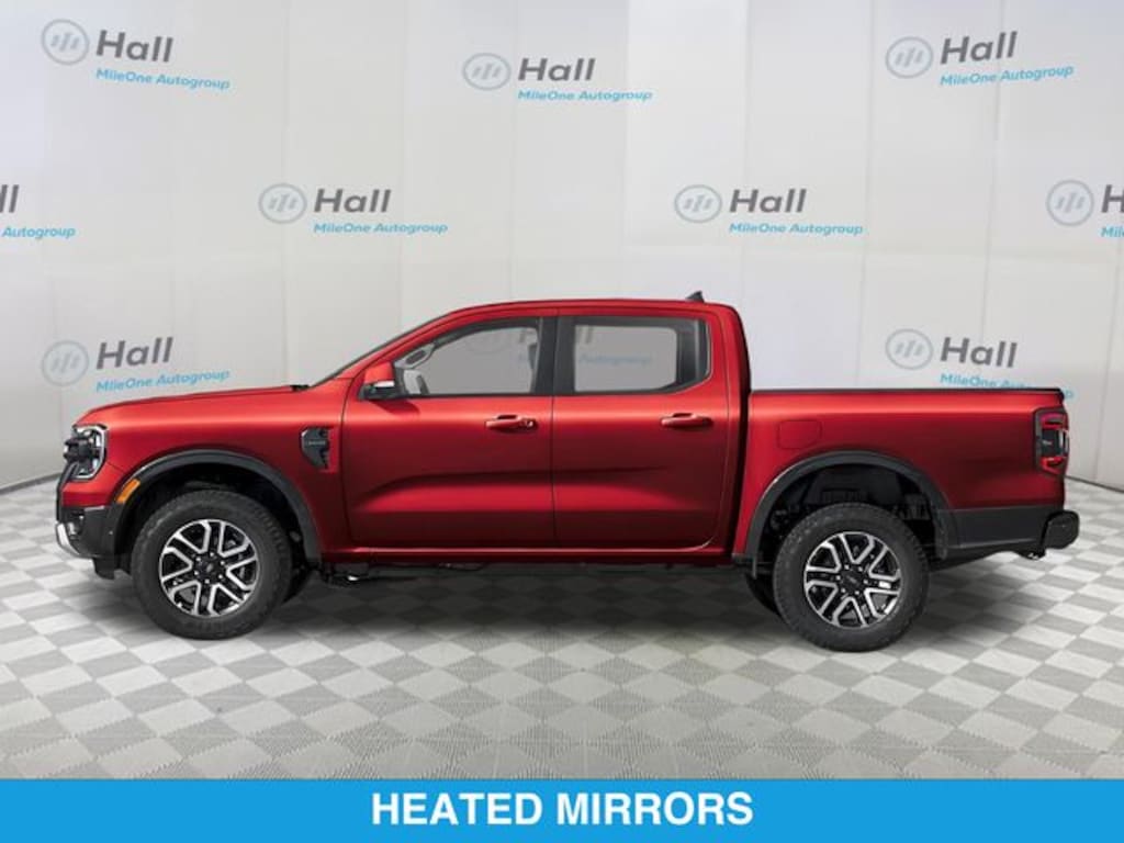 JUST ARRIVED. PENDING INSPECTION. Ruby Red Metallic 2025 Ford Ranger Lariat 4WD 10-Speed Automatic 2.7L EcoBoost V6 We are currently offering Vehicle Purchase Home Delivery by appointment. Please contact for details., 4WD, 10 Speakers, 3.73 Axle Ratio, 4-Wheel Disc Brakes, ABS brakes, Advanced Towing Package, Air Conditioning, Alloy wheels, AM/FM radio: SiriusXM, Auto High-beam Headlights, Auto-dimming Rear-View mirror, Automatic temperature control, Brake assist, Class IV Trailer Hitch Receiver, Compass, Delay-off headlights, Driver door bin, Driver vanity mirror, Dual front impact airbags, Dual front side impact airbags, Electronic Stability Control, Emergency communication system: SYNC 4 911 Assist, Equipment Group 500A Standard, Front anti-roll bar, Front Bucket Seats, Front Center Armrest, Front dual zone A/C, Front fog lights, Front reading lights, Front wheel independent suspension, Fully automatic headlights, Garage door transmitter, Gray Painted Center Bar & Grille Surround, Gray Painted Front Fascia & Rear Bumper, Heated door mirrors, Heated front seats, Heated steering wheel, Illuminated entry, Internet access capable: FordPass Connect 4G, Leather Shift Knob, Leather steering wheel, Leather-Trimmed Front Heated Bucket Seats, Low tire pressure warning, Memory seat, Navigation system: Connected Navigation, Occupant sensing airbag, Outside temperature display, Overhead airbag, Overhead console, Panic alarm, Passenger door bin, Passenger vanity mirror, Power door mirrors, Power driver seat, Power passenger seat, Power steering, Power windows, Pro Trailer Backup Assist, Radio: B&O Sound System by Bang & Olufsen, Rain sensing wipers, Rear Parking Sensors w/Trailer Guidance, Rear reading lights, Rear seat center armrest, Rear step bumper, Rear window defroster, Remote keyless entry, Security system, SiriusXM Satellite Radio, Speed control, Speed-sensing steering, Sport Appearance Package, Sport Box Decal, Steering wheel mounted audio controls, SYNC 4A w/Connected Navigation, Telescoping steering wheel, Tilt steering wheel, Traction control, Trailer Brake Controller, Trailer Tow Package, Trip computer, Turn signal indicator mirrors, Variably intermittent wipers, Voltmeter, Wheels: 18" Machined Aluminum w/Dark Pockets, 4WD.