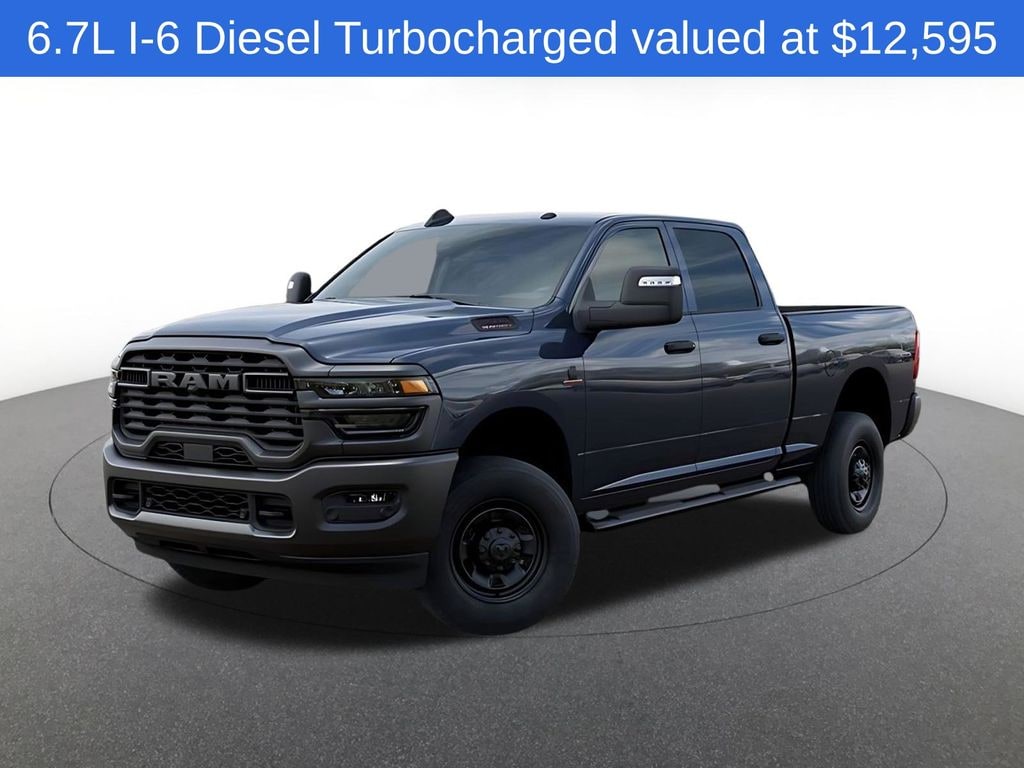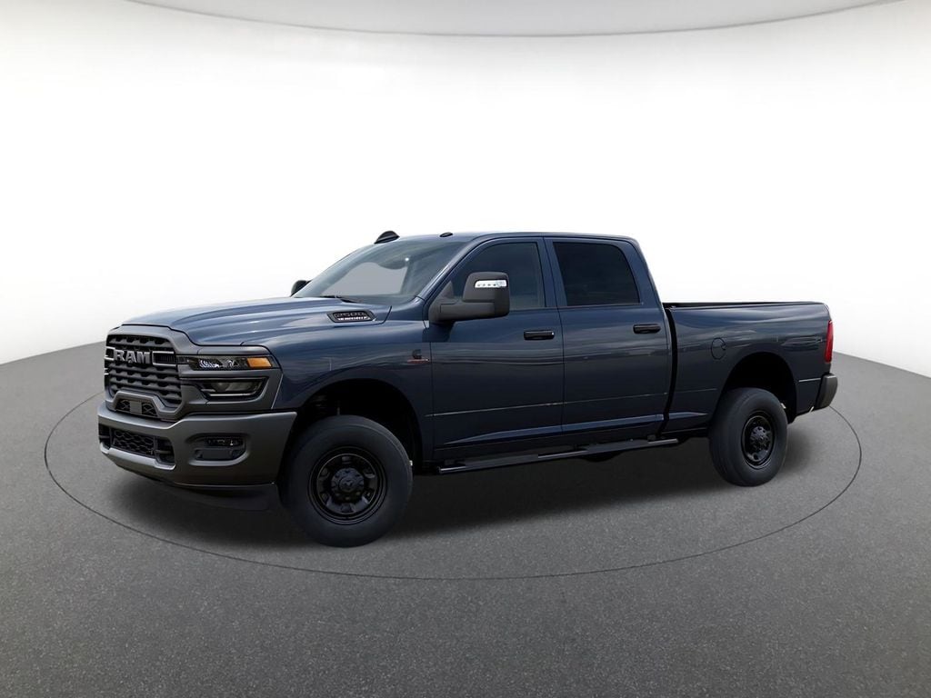 Bed Convenience Group (LED Bed Lighting and MOPAR Spray In Bedliner), Cold Weather Group (Engine Block Heater and MOPAR Winter Front Grille Cover), Quick Order Package 24A Tradesman, Safety Group (Active Lane Management System, Adaptive Steering System, Auto High Beam Headlamp Control, Auto-Dimming Rear-View Mirror, Cluster 7.0" TFT Color Display, Drowsy Driver Detection, Luxury Steering Wheel, Rain Sensitive Windshield Wipers, Steering Wheel Mounted Audio Controls, and Traffic Sign Recognition), Tradesman Level 1 Equipment Group (115V Auxiliary Front Power Outlet, 12" Touchscreen Display, 2 Way Rear Headrest Seat, 4 Way Front Headrests, 40/20/40 Split Bench Seat, 400W Inverter, 4G LTE Wi-Fi Hot Spot, Air Conditioning ATC w/Dual Zone Control, Alexa Built-In, Anti-Spin Differential Rear Axle, Apple CarPlay, Black Exterior Mirrors, Carpet Floor Covering, Cloth 40/20/40 Bench Seat, Connected Travel & Traffic Services, Connectivity - US/Canada, Disassociated Touchscreen Display, Emergency Vehicle Alert System (EVAS), Exterior 115V AC Outlet, Exterior Mirrors Courtesy Lamps, Exterior Mirrors w/Heating Element, Exterior Mirrors w/Supplemental Signals, Front & Rear Floor Mats, Front Armrest w/Cupholders, Global Telematics Box Module (TBM), Google Android Auto, GPS Antenna Input, GPS Navigation, HD Radio, Integrated Voice Command w/Bluetooth, Manual Adjust 4-Way Driver Seat, Manual Adjust 4-Way Front Passenger Seat, Manual Folding Exterior Mirrors, Manual Telescoping Mirrors, Mirror Running Lights, Mopar Black Tubular Side Steps, Off-Road Info Pages, ParkSense Front/Rear Park Assist System, Power Adjust Mirrors, Power Adjustable Convex Aux Mirrors, Power Heated Folding Telescope Mirrors, Radio: Uconnect 5 Nav w/12.0" Display, Rear Folding Seat, Rear Power Sliding Window, Remote USB Port - Charge Only, Selectable Tire Fill Alert, SiriusXM Radio Service, SiriusXM w/360L, Storage Tray, Tinted Acoustic Windshield Glass, and Trailer Tow Pages), 4-Wheel Disc Brakes, 6 Speakers, ABS brakes, Air Conditioning, AM/FM radio: SiriusXM, Apple CarPlay/Android Auto, Black Wheel Center Hub, Blind Spot & Cross Path Detection, Brake assist, Compass, Delay-off headlights, Delete Deployable Bed Step (DISC), Driver door bin, Dual front impact airbags, Dual front side impact airbags, Electronic Stability Control, Front anti-roll bar, Front Center Armrest w/Storage, Front fog lights, Front License Plate Bracket, Front reading lights, Fully automatic headlights, Heavy Duty Vinyl 40/20/40 Split Bench Seat, Illuminated entry, LED Tail Lamps, Low tire pressure warning, Occupant sensing airbag, Outside temperature display, Overhead airbag, Overhead console, Panic alarm, ParkView Rear Back-Up Camera, Passenger door bin, Passenger vanity mirror, Power steering, Power windows, Radio data system, Radio: Uconnect 5 w/8.4" Display, Rear anti-roll bar, Rear step bumper, Rear window defroster, Red Tail Lamp Bezels, Remote keyless entry, Speed control, Tachometer, Tilt steering wheel, Traction control, Variably intermittent wipers, Voltmeter, and Wheels: 17" x 7.5" Black Steel St